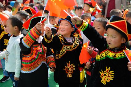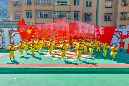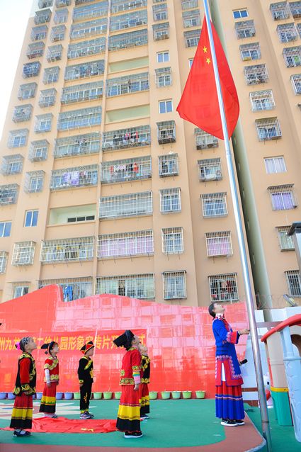 “六一”前夕,我肩挎相機走進(jìn)了熱鬧非凡的九龍縣二幼,他們正在舉行“我們在一起”文藝活動(dòng)?;顒?dòng)一開(kāi)始,幾個(gè)四五歲的小小升旗手,身著(zhù)民族服裝在老師的口令下莊重地走上旗臺,在激昂的國歌聲中,國旗在他們手中冉冉升起,全場(chǎng)行注目禮。這場(chǎng)景令我感動(dòng)不已,國家強盛,人民安康,孩子們在溫暖的陽(yáng)光下茁壯成長(cháng)。