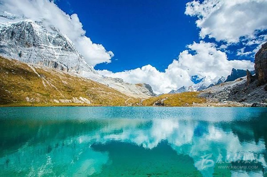 藍(lán)天白云、雪峰皚皚,冰川閃爍、青山融融、綠草茵茵、波光粼粼。湖岸珍禽異獸出沒,湖中野鴨成群,魚兒游弋。山花爛漫,爭芳斗艷,真可謂世間仙境。