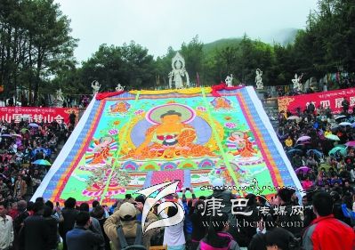 康定古稱打箭爐,蜀漢時諸葛亮南征孟獲,遣將郭達在此處(今康定)造箭得名。既是情歌的故鄉(xiāng),又是茶馬互市的重鎮(zhèn),鍋莊文化的發(fā)祥地。古城三山環(huán)抱,二水夾流,折多河貫穿城中,富有民族風格的各式建筑錯落有致地散布于河兩岸。雄偉的雪山,晶瑩的湖泊,碧綠的原野;這里風光迷人,歌聲醉天下。
