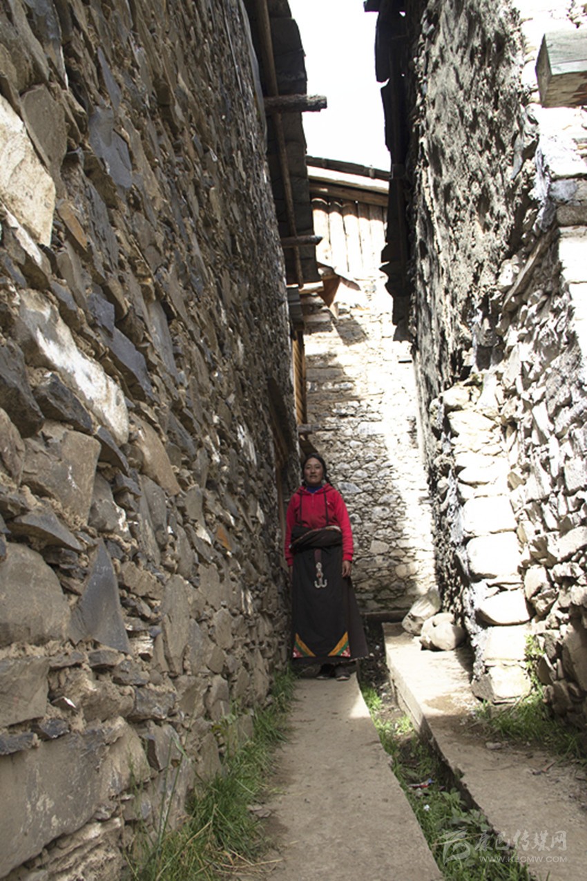 莫斯卡的房子都用石頭砌成,并在外墻噴成灰白的顏色,屋外一條斜斜的樓梯通往屋內(nèi),樓梯或屋后整齊的堆滿柴禾,屋頂都用青石板蓋成。整個(gè)村莊緊緊圍著金龍寺向外延擴(kuò)展,形成一個(gè)約20-30畝的長方形村落,并砌了圍城將村莊圍起來。圍墻留有一個(gè)前門和兩個(gè)中門,供村民們進(jìn)出。村民們與自然和諧相處,過著“與世隔絕”的生活。