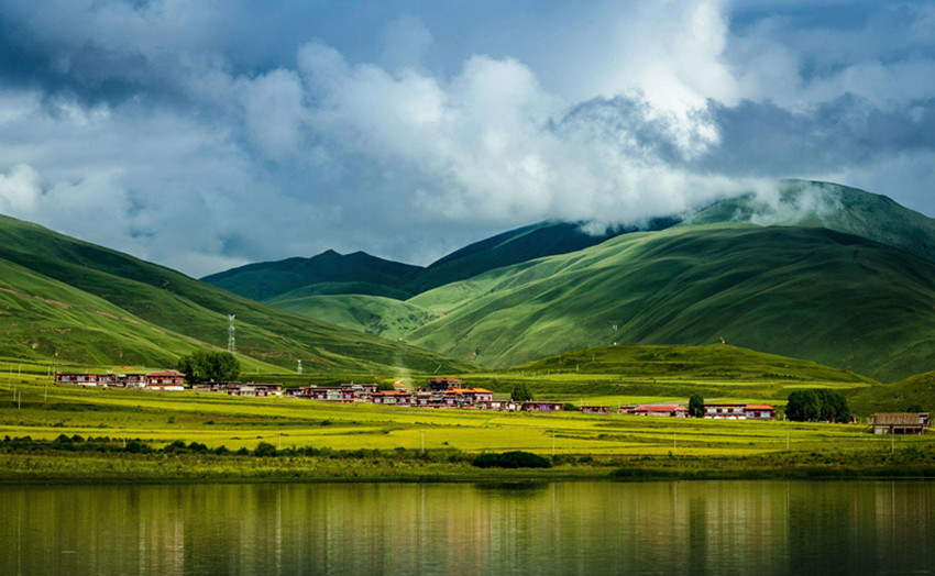 如果當(dāng)天天氣非常好,信步走向湖邊,潮濕清新的空氣撲面而來。白云掛在半空忽忽悠悠飄來飄去最終匯集在馬日岡神山之巔,湖邊的坡地上光影快速游動(dòng),讓人不禁心生疑竇——此處就是天堂。