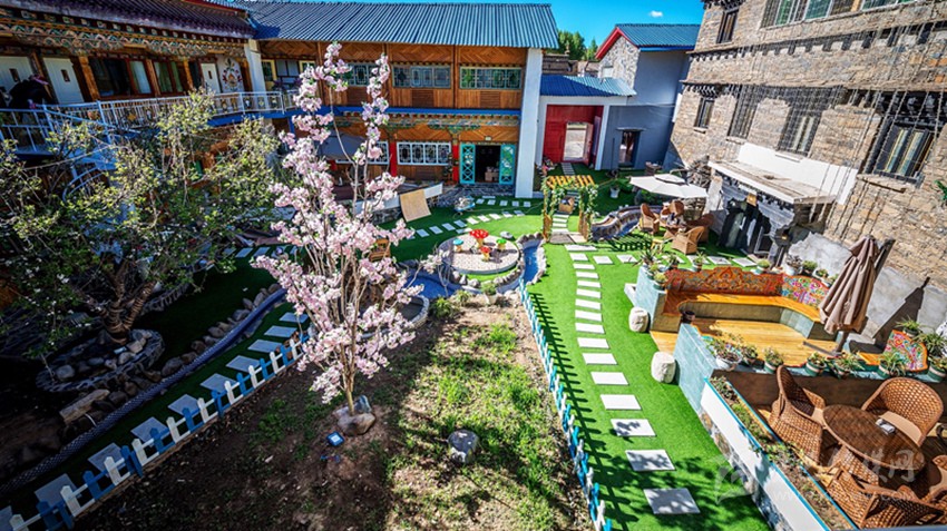 曾經(jīng)的倉庫變成了咖啡廳,關(guān)牛的地方變成了餐廳,土司房變成了溫泉套間,四合院變成了小橋流水,雖然有些改變,但留給客人的依舊是一個(gè)傳統(tǒng)藏式四合院?!拔ㄒ桓淖兊闹皇嵌嗔诵┬氯诵率聛韥硗?,在這里從你的全世界路過……”石雅琴借用張嘉佳的《從你的全世界路過》的話語,道出了她對“親愛的宅宅”的“定性”。