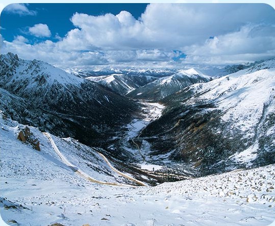 雀兒山主峰海拔6168米,坐落在雀兒山南段,德格縣境內(nèi)。山區(qū)海拔5000米以上雪峰有數(shù)十座之多,是康藏交通的要塞。雀兒山藏名“措拉”,意為大鳥羽翼。冰雪皚皚,巍峨雄偉的雀兒山居沙魯里山系北段,最高峰海拔6168米,該山山勢挺拔,壁立于周圍十座5500米的群峰之上。故有“爬上雀兒山,鞭子打著天”之說。