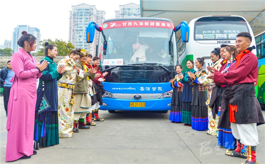 景區(qū)直通車授牌儀式和自駕游車隊(duì)授牌儀式也是本次推介會(huì)的亮點(diǎn)。兩項(xiàng)儀式旨在進(jìn)一步方便廣大游客到九龍旅游,并開啟成都直通九龍旅游及運(yùn)輸融合發(fā)展的歷史征程。現(xiàn)場(chǎng),貼有“穿越藏彝走廊,體驗(yàn)民俗風(fēng)情”和“甘孜九龍旅游直通車”車標(biāo)的汽車引得不少人注目,有的還當(dāng)即向工作人員咨詢票價(jià)、路線。