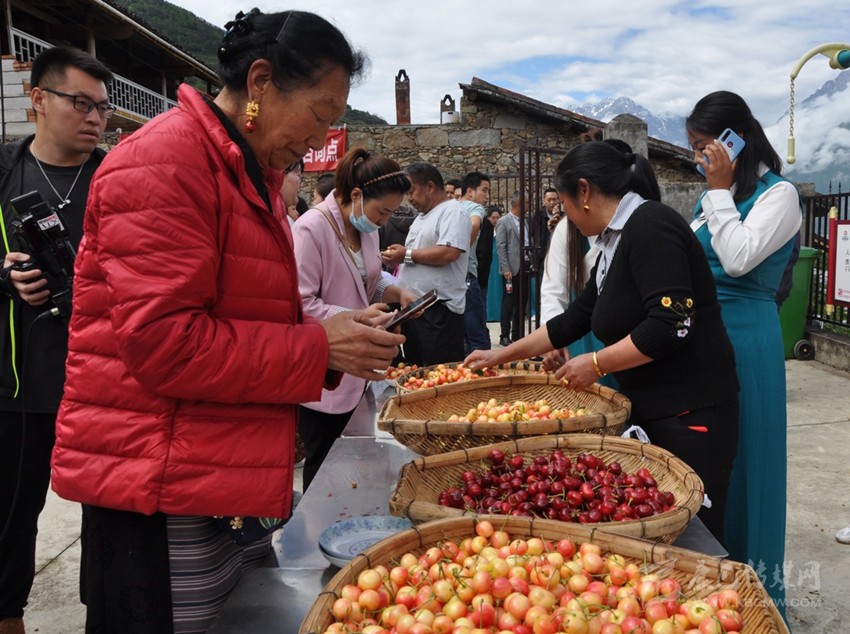 五月的大渡河沿岸鮮花怒放、瓜果飄香,黃橙橙的枇杷,紅彤彤的櫻桃沉甸甸地掛滿枝頭。近日,“鄉(xiāng)村振興·櫻你而美”康定市甜櫻桃采摘品鑒現(xiàn)場會(huì)在該市姑咱鎮(zhèn)莊上村舉行。拉賓斯、布魯克斯、美早、早紅珠、晚紅珠、紅燈、明珠等10多個(gè)品種大櫻桃均已成熟,各路客商紛紛與村合作社對接訂貨。