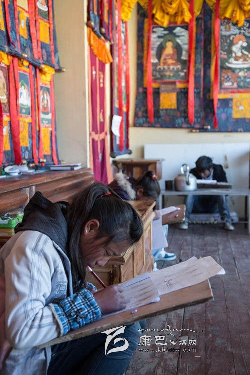 11月11日,幾個孩子在學(xué)習(xí)唐卡畫基本功。