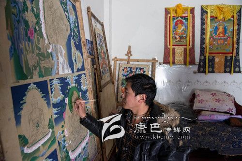爐霍是一代唐卡宗師郎卡杰(約公元1610年生)的故鄉(xiāng),歷代傳承弟子風(fēng)格一脈相承,形成郎卡杰唐卡繪畫流派。該派作品的層次感,從花草樹木的枝葉前后層次,到山水房屋、飛禽走獸、人物器具的遠近距離和明暗關(guān)系,都彰顯了三維立體的空間效果,繪畫中除了對主圖的精湛表現(xiàn),對局部結(jié)構(gòu)的精確處理和頻現(xiàn)微型畫像的神奇描繪,更是完美結(jié)合。郎卡杰本人作品《佛本身轉(zhuǎn)》、《二圣六莊嚴(yán)》等作品堪稱一絕。2008年,文化部授予爐霍“中國民間藝術(shù)之鄉(xiāng)——唐卡之鄉(xiāng)”。