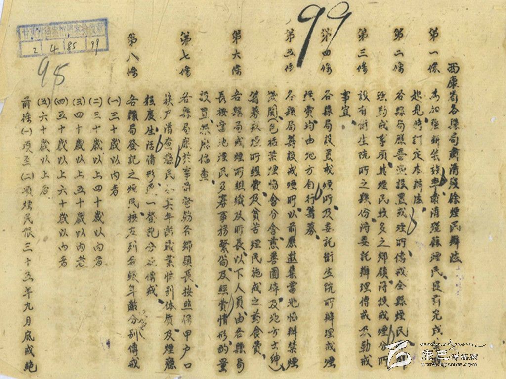 這一組檔案是在民國年間不同年代的禁煙令,有的出自于四川省、西康省,有的出于縣政府;有的以布告形式,有的以條告的形式,內(nèi)容不拘長短,都在強(qiáng)調(diào)禁煙。