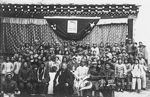 10月15日上午來(lái)了通知,下午1:30舉行開(kāi)學(xué)典禮,在會(huì)上自治區(qū)領(lǐng)導(dǎo)當(dāng)場(chǎng)宣布:實(shí)習(xí)隊(duì)改為“藏族自治區(qū)民族學(xué)校語(yǔ)文班”,再?gòu)漠?dāng)?shù)馗饔嘘P(guān)部門抽調(diào)30名干部和實(shí)習(xí)隊(duì)一起下去學(xué)習(xí),學(xué)習(xí)地點(diǎn)是木雅地區(qū)貢嘎山的貢嘎寺。校長(zhǎng)是自治區(qū)副主席阿旺加錯(cuò)同志,教授是貢嘎活佛,還將從德格等地再請(qǐng)幾位老師,從干部中調(diào)來(lái)一位正縣長(zhǎng)馬崇正當(dāng)班主任,協(xié)助楊炎侯抓思想工作,并統(tǒng)管后勤工作。同時(shí),還配備了專職的醫(yī)生、護(hù)士、炊事員各一名。最后自治區(qū)的苗副政委語(yǔ)重心長(zhǎng)地對(duì)大家說(shuō):“下去后,肯定有許多困難!怕困難就不是毛主席的好學(xué)生,誰(shuí)向困難低頭就意味著背叛革命!”當(dāng)天晚上還開(kāi)了聯(lián)歡會(huì),除了表演一般歌舞之外,我們用集體朗誦詩(shī)的形式回答了首長(zhǎng)們的殷切期望。詩(shī)中說(shuō):“我們要?jiǎng)?chuàng)造學(xué)習(xí)上的新紀(jì)錄,保證學(xué)習(xí)計(jì)劃百分之百地完成。”