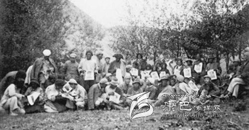 10月30日,在寺廟廣場(chǎng)上舉行了開(kāi)學(xué)典禮,貢嘎活佛講了話。他老人家聲音洪亮,表情熱情洋溢,講得有聲有色,可惜我們只聽(tīng)懂一小部分。接著隊(duì)長(zhǎng)楊炎侯宣布了分班事宜,原來(lái)的實(shí)習(xí)隊(duì)為一班,各地區(qū)調(diào)來(lái)的新學(xué)員為二班。于道泉教授宣布了這一階段的學(xué)習(xí)計(jì)劃:一班學(xué)拉薩話為主,德格話為輔,在學(xué)話的基礎(chǔ)上學(xué)好文字;二班只學(xué)德格話口語(yǔ),暫時(shí)不學(xué)文字;從組織上成立一個(gè)教材小組,由于道泉教授和格桑居冕老師領(lǐng)導(dǎo)編教材,抽調(diào)5位同學(xué)輪流參加刻蠟版、裁紙、印刷……同時(shí),抽調(diào)一班的胡坦同學(xué)擔(dān)任二班的輔導(dǎo)員,由于道泉教授、格桑居冕老師、胡坦同學(xué)三人根據(jù)德格話的發(fā)音,編出一套注音符號(hào)(德格話較復(fù)雜,輔音和元音都比拉薩話多)。