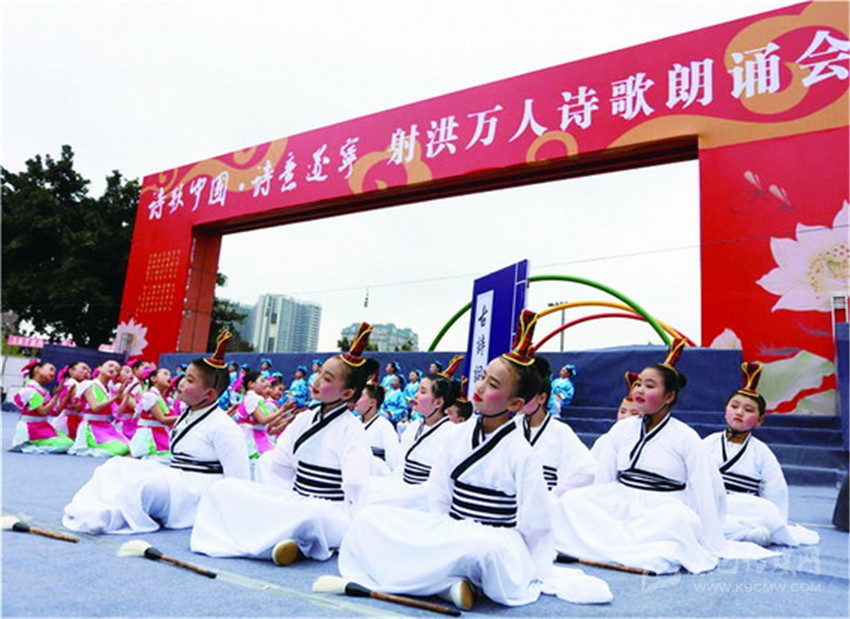 據(jù)了解,本次活動是《詩刊》2016年度陳子昂詩歌獎系列活動之一,參與人數(shù)之多、規(guī)模之大,在射洪縣尚屬首次?,F(xiàn)場由射洪中小學(xué)生和企事業(yè)單位組成的方陣和演出隊伍,以載歌載舞或配樂詩朗誦等形式登臺表演, 內(nèi)容以經(jīng)典詩詞為主,也有圍繞當前中心工作而創(chuàng)作的新詩。這是文化的傳承,更是血脈的延續(xù)。參加詩歌朗誦會的最小的4歲,或許他們不懂文字背后的美,并不理解字里行間透露出的人生況味,但他們在射洪這樣的文學(xué)滋 養(yǎng)中出生、成長。
