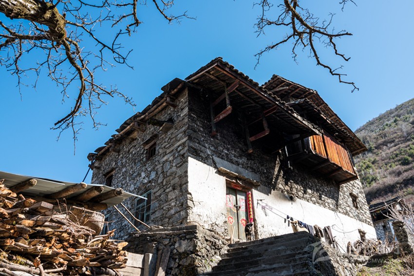 魚通人的房屋符合古人對居所背山面水的要求,多依山而建。房屋為木石混合結(jié)構(gòu),以片石木材和黃泥為主要材料建成,當(dāng)?shù)厝朔Q之為“碉房”。房屋用石塊壘起,以木頭為墻筋,每隔一定高度,橫砌進(jìn)入石塊,融為一體,使之更為堅(jiān)固牢靠?!暗锓俊?/span> 一般為三層或四層,呈四角或六角形。底層為關(guān)牲畜。第二層為“堂屋”, 在過去,是集做飯、吃飯、烤火、家人日?;顒?dòng)為一體的場所,地上設(shè)有火塘、灶,并在火塘上設(shè)石制三腳鍋莊或鐵三腳。第三層為各居室,有的設(shè)有貯藏室和會(huì)客屋。頂層為經(jīng)堂,室外為曬壩,作打場、曬場用。有些在外側(cè)設(shè)有一小吊腳樓,可堆放雜物。隨著時(shí)間的流逝,古老的碉房已無法滿足現(xiàn)在居民的需求,已很少有人居住,而新式碉房在傳統(tǒng)的基礎(chǔ)上開始出現(xiàn)。
