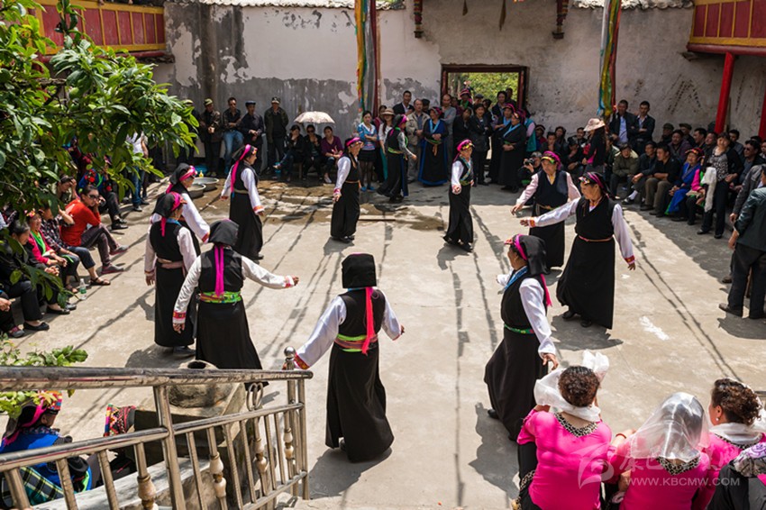 魚通鍋莊是魚通地區(qū)最傳統(tǒng)的一種舞蹈,在幾百年前已開始流傳,它在自身傳統(tǒng)文化的基礎(chǔ)上吸收了其他民族的文化,使其舞蹈獨(dú)具特色。魚通鍋莊動(dòng)作幅度小,剛?cè)岵?jì),步伐先慢后快,剛勁有力又柔美飄逸。在魚通地區(qū),跳鍋莊仍然是節(jié)慶婚宴時(shí)必不可少的內(nèi)容。無需什么演出場地,只要興之所至,人們便圍成一圈,中間放一張桌子,上面擺放酒、臘肉、錢、米或麥子。男女老少身著長衫,分成兩隊(duì),男女領(lǐng)舞各一名,眾人隨著領(lǐng)舞之人對唱對舞。口中唱詞一出,手、腳便跟著甩出,歡樂喜慶便隨之而至。同魚通山歌一樣,魚通鍋莊目前也只有一些上了年紀(jì)的人才會(huì)跳了,由于沒有文字和曲譜,古老的魚通歌舞正面臨著失傳的尷尬境況。
