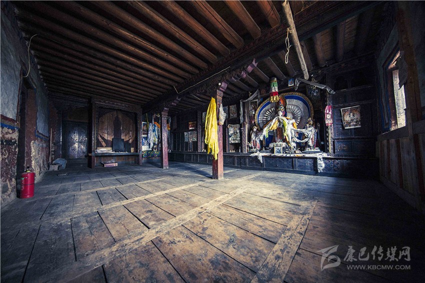 整個(gè)自麥經(jīng)堂內(nèi)除了佛像外,所有的家具都已經(jīng)被搬走,但從墻上的壁畫和佛像上,依然還能看出當(dāng)年自麥家族的輝煌。
