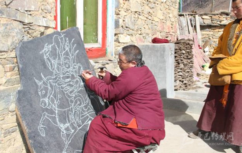 道孚縣東部的龍燈壩曾是格薩爾王征戰(zhàn)過的地方,這里以“格薩爾通”為核心的格薩爾文化世代流傳、積淀深厚,且富有質(zhì)地堅硬、品相良好的天然頁巖。在歲月的長河中,龍燈人把傳統(tǒng)繪畫、歷史傳說和石刻工藝緊密融合,創(chuàng)造了獨具特色的龍燈石刻,填補了格薩爾文化在藏族石刻中的空白。千百年來,龍燈人像傳承基因一樣世代傳承著這門“專屬”工藝。