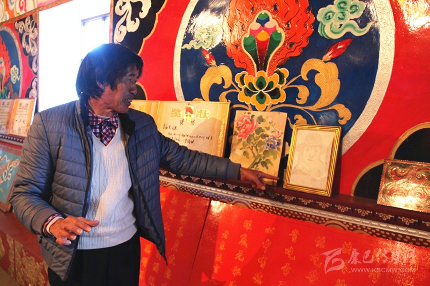 在城鄉(xiāng)提升戰(zhàn)略中,王長生設計的九龍入城大門,將“九龍”兩個字用藝術字處理,融入九龍縣藏漢彝族文化元素,文化底蘊深厚,被九龍縣委、政府選中。家里居室大門雕刻、外墻裝飾畫均出自他之手,他家的房屋建筑既有川西建筑特點,又有藏漢彝族建筑文化特色,因為在他的家里,大女婿是漢族,二女婿是藏族,三女婿是彝族,家里的建筑特點和裝飾風格體現(xiàn)了藏漢彝一家親的和諧氛圍。