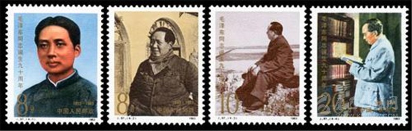 我國從1983年開始,郵政部門開始每“逢十”發(fā)行毛澤東誕辰紀(jì)念郵票,至今已發(fā)行了四套共15枚,其中小型張1枚。方寸之間生動(dòng)的再現(xiàn)了毛澤東光彩照人的偉人風(fēng)采。