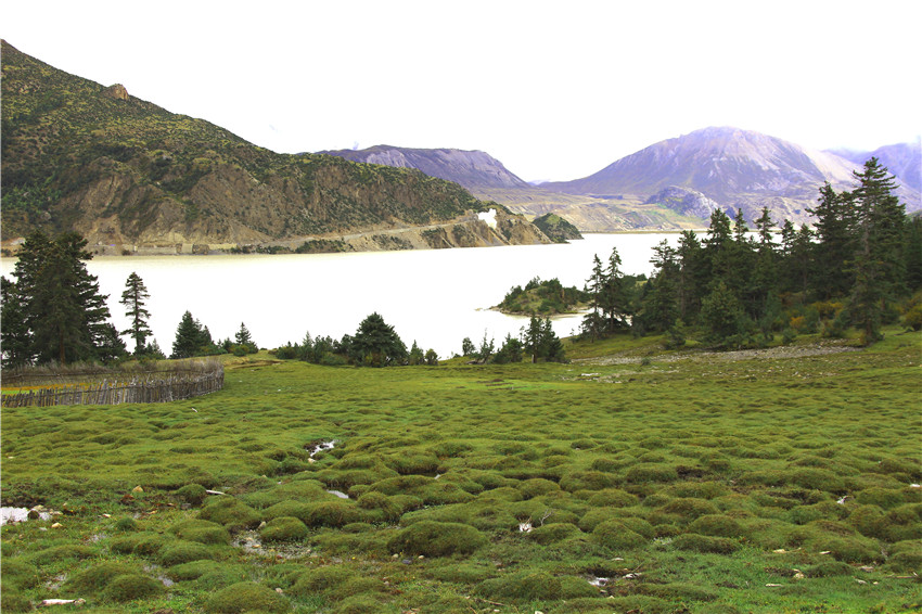 我一直走到村莊的盡頭,那里又是然烏湖的水域,湖邊有很多鵝卵石。我問了好些人才弄清“然烏”一詞的漢語的大意: “許多尸體堆積在一起”。據(jù)說這里曾是藏東南有名的水葬場,這也是它有名的另一個(gè)原因。歸去來兮,生死輪回,最后在這里仰望雪山草地,干干凈凈,一身清白,等候踏上去天堂的路。水葬是藏族古老習(xí)俗中三種殯葬方式中的一種,佛家講布施,天葬和水葬都含有布施的意義。藏民不吃魚也多是源于此。