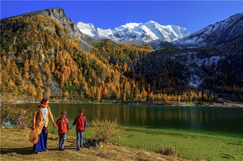 這里所說的跨越性是從時(shí)間和空間二維角度來講的。藏傳佛教中講輪回,在這種宗教觀念的影響下,宇宙之輪循環(huán)往復(fù),時(shí)間序列中過去、現(xiàn)在、未來永恒循環(huán),時(shí)間在空間中的綿延不會(huì)影響和區(qū)別生命的自在狀態(tài)。龍仁青小說在時(shí)間的跨越中體現(xiàn)藏文化的一脈傳承,《巴桑寺的C大調(diào)》里民國(guó)山灣巴桑寺的太陽“依舊蹲坐在西山頂上,有著持重老成的高僧大德一般的莊重和平靜”,《鳥巢》中當(dāng)下曲果小鎮(zhèn)的太陽“就像是一個(gè)深諳人生世事,有著豐富閱歷的老人,沉穩(wěn)而又粗然”。民國(guó)時(shí)期美國(guó)植物學(xué)家麥迪到巴桑寺拜謁神樹“拉香秀巴”,采集植物標(biāo)本;時(shí)光輪轉(zhuǎn)《綻放》里漢藏雙語寄宿小學(xué)的次洛在查美河岸草原尋找雪蓮和槐花,尋訪阿奶郎洛妮幽深的身世。上世紀(jì)70年代盛夏巴桑寺僧人久美身后姑娘的歌聲,幾十年后查美河岸次洛聽阿奶郎洛妮的吟唱。小說中時(shí)間跨度近一個(gè)世紀(jì),但藏族人對(duì)青藏高原富有山川地貌罕見的地理的情感與瑰麗的審美想象沒有變,對(duì)幽密深切滴愛情意蘊(yùn)的表達(dá)和書寫沒有變。