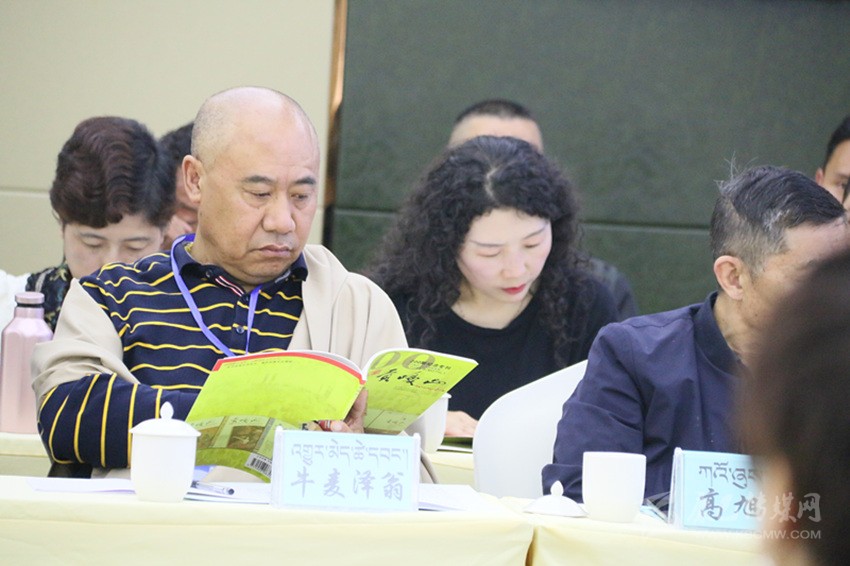 會議室正中的電子屏上,“貢嘎山期刊交流暨2019年藏漢文作家培訓(xùn)會”白色字體赫然入目。室內(nèi)最靠后的桌上,《貢嘎山》200期紀(jì)念???、《貢嘎山》第199期等藏漢文讀物有序擺放,吸引了不少“粉絲”當(dāng)場品讀。