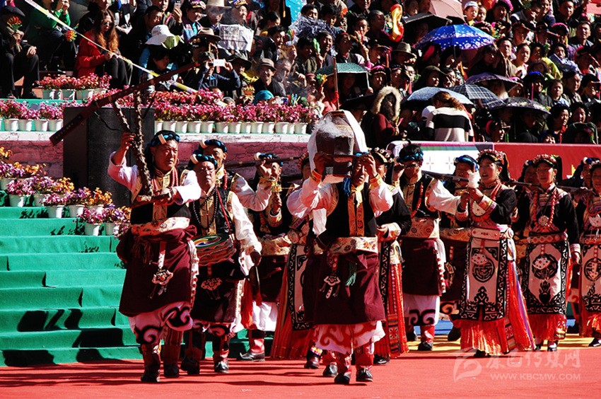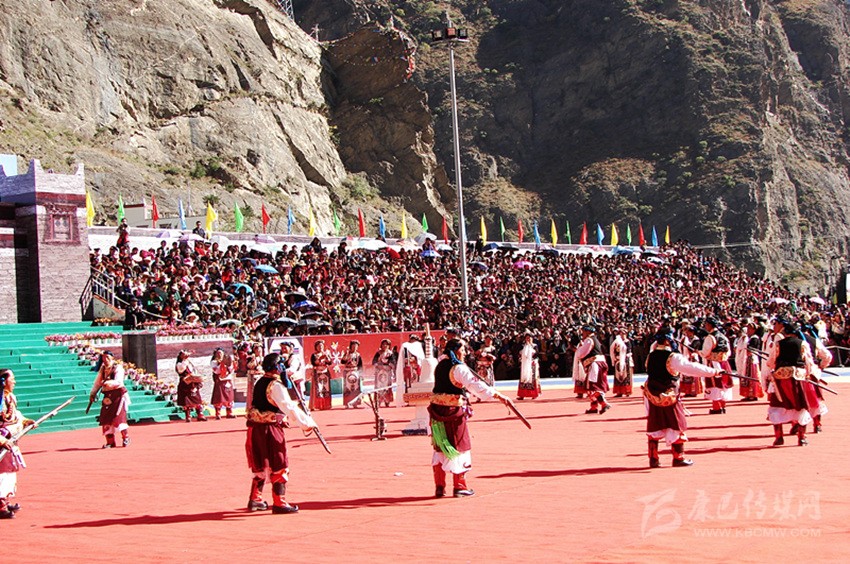 槍舞,嘉絨語中稱為“訥沖呷兒”,主要是在祭祀、集會(huì)、節(jié)日時(shí)表演的一種近似于戰(zhàn)術(shù)的舞蹈。在舞蹈中,舞者圍成一個(gè)圓圈,手持明火槍,明火槍,是最早的一種真正適于在戰(zhàn)場(chǎng)上為軍事目的使用的火槍。槍膛為一根圓柱形的鐵筒,筒口直徑為三厘米左右,在槍膛底部,有一個(gè)小圓孔伸出槍管,為導(dǎo)火管。如耳朵狀,因此也稱為槍耳,主要是用來點(diǎn)火的地方。圓筒固定在堅(jiān)硬的木托頂端。這種輕火器或者說小型火炮使用的是形狀不規(guī)則的彈丸,即不大的實(shí)心彈,它緊貼大?;鹚幹瞥傻难b藥,借緊挨導(dǎo)火孔的火繩發(fā)射。