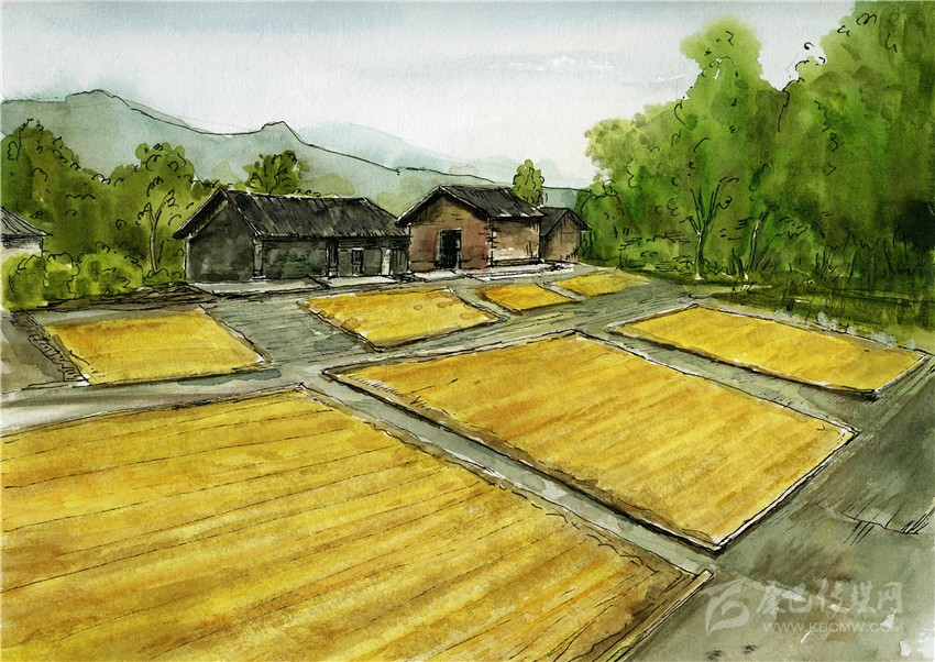 1982年冬,我剛上初中,我們家搬進(jìn)了新建的瓦房,在村莊的南端,此時(shí),大集體解散,分田到戶。這里視野開闊,光線很好。屋前是一條清澈的溪圳,溪岸下是我們家的小魚塘,推而遠(yuǎn)之,便是稻田、江流和山嶺。屋旁有我家的一塊小禾場,毗鄰的,是更多更大的禾場,那原本是各生產(chǎn)隊(duì)的。一年里,禾場大多數(shù)時(shí)候是空置的,是村里孩子和少年打陀螺的好地方。每逢夜里放露天電影,寬大的銀幕掛在禾場邊禾屋的墻上,禾場上擺滿了長凳,或坐或站,滿是人。禾場是晾曬谷物的場所,那時(shí)候,五谷雜糧,村人都愛種植,不讓土地閑置。初夏割了小麥,挑到禾場打麥子,曬麥子。黃豆、高粱、花麥、穇子、花生,也都是禾場晾曬。到了割早稻割晚稻的那段日子,禾場上就更忙碌了。每天上午,各家從稻田挑來的稻谷,將一塊塊禾場曬滿。傍晚太陽落山,家家戶戶又將竹掃帚、刮板、谷籮、風(fēng)車、撮篩、桿秤諸物一股腦搬了來,收谷,車谷,過稱,挑谷,禾場上一派熱鬧景象。