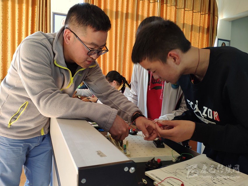 孫橙陽(yáng)老師在爐霍縣中學(xué)物理實(shí)驗(yàn)室指導(dǎo)網(wǎng)班學(xué)生做實(shí)驗(yàn)。