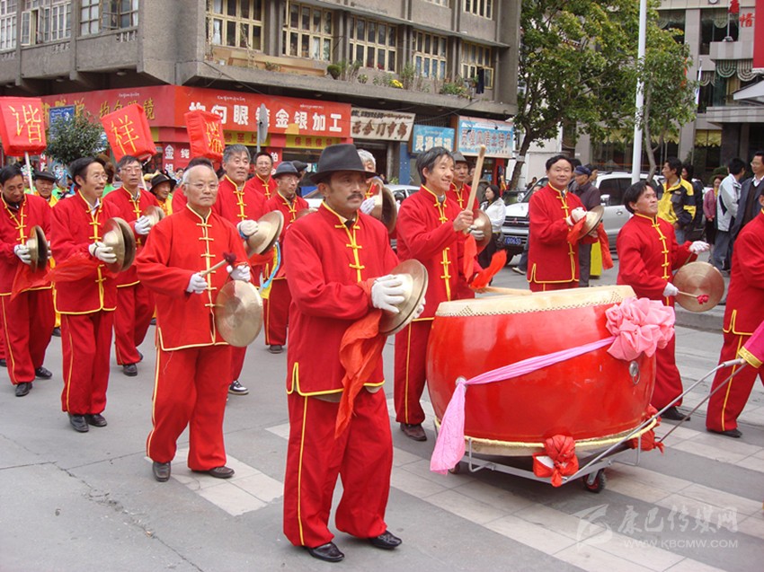 大年三十夜,山谷中的康定城廓鼓聲震天,“鬧山鼓”將過年的氣氛推向了高潮。當(dāng)年“鬧山鼓”打得最好的是一位人稱“韓八爺”的陜西漢子,后來“韓八爺”打不動了,由另一家陜西戶縣來的姓徐的人家接替。徐家老父打不動了又傳給了徐大哥。到徐大哥操鼓槌時,參與打鼓的已不再全是陜西人了,康定熱愛這鼓聲的藏、漢、回族漢子也參與進(jìn)來,成了多民族的鼓隊(duì)。這原本屬于陜西戶縣的“老陜鼓”,如今在戶縣卻打不全了。徐大哥健在時說,“鬧山鼓”鼓譜共有20多節(jié),那年他回戶縣探親,戶縣的鼓匠最多只能打一半的鼓譜,而在康定,全套的鼓譜卻被這支多民族的鼓隊(duì)流傳了下來。