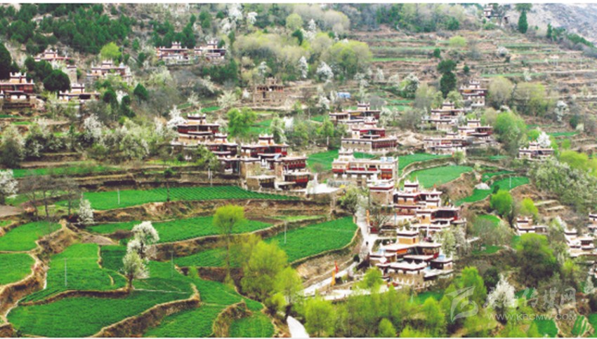 甲居,藏語是“百戶人家”的意思。實(shí)際上甲居藏寨分為一村、二村、三村共150余戶人家,700多人口,甲居藏寨所在地形如一個(gè)面積為5平方公里的大盆,大盆斜倚卡帕瑪群山,一棟棟外形別致、色彩鮮艷的典型嘉絨藏式民居錯(cuò)落有致地從山腳一直排到半山。甲居人一代一代修造的梯田點(diǎn)綴民居之間,顯示出別具一格的田園韻味。茂密的柏樹掩映著民居,這些別致的民居不象故宮規(guī)模對(duì)稱,也不象蘇州園林隨興布局。碉樓式的民居雖無嚴(yán)格的統(tǒng)一規(guī)劃,但卻似乎不是隨意而建,每棟民居都有它獨(dú)特?fù)屟鄣娘L(fēng)格。正是這些別具一格的座座碉樓民居,構(gòu)成甲居藏寨的精妙絕倫。民居外所立的經(jīng)幡以及房頂隨風(fēng)飄動(dòng)的瑪尼旗,又為恬靜如詩的鄉(xiāng)土民居增添了無限神秘的色彩。祥云籠罩山頂,溪水潺潺環(huán)流,山腳滾滾河流,山水渾映,天水合一,筆者一行不由驚嘆,甲居藏寨 ,名符其實(shí)的人間仙境,世外桃源!先前道路險(xiǎn)峻留在心底的驚懼早已一掃而光,一行人激動(dòng)著迫不及待地?fù)渖碛诿啦粍偈盏南删持小?/p>