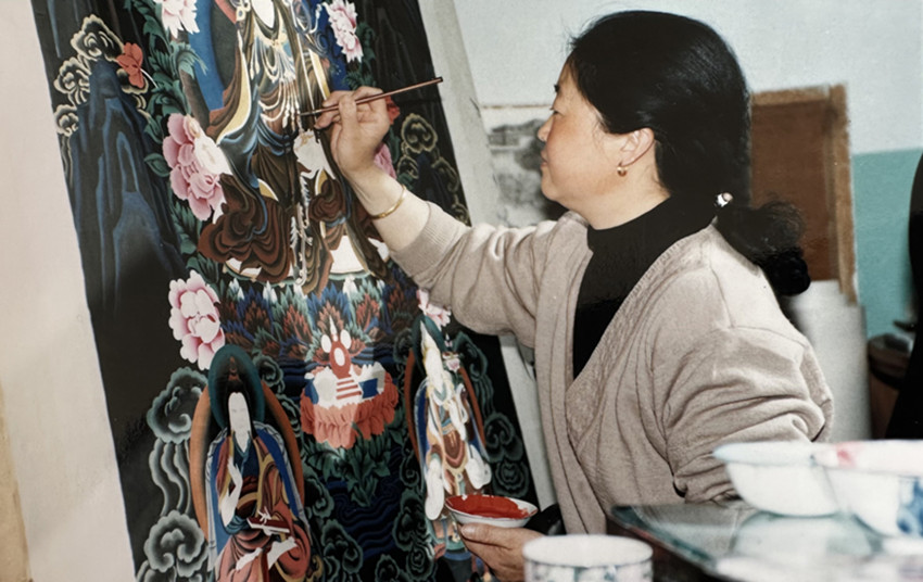 翔秋志瑪(又名王芳馨),這位在新中國成立后,成長起來的畫家,打破了女性不能畫唐卡的舊規(guī),將古老的藝術與藏民族現(xiàn)代的生活相結合,開創(chuàng)了我州藏畫的新局面。