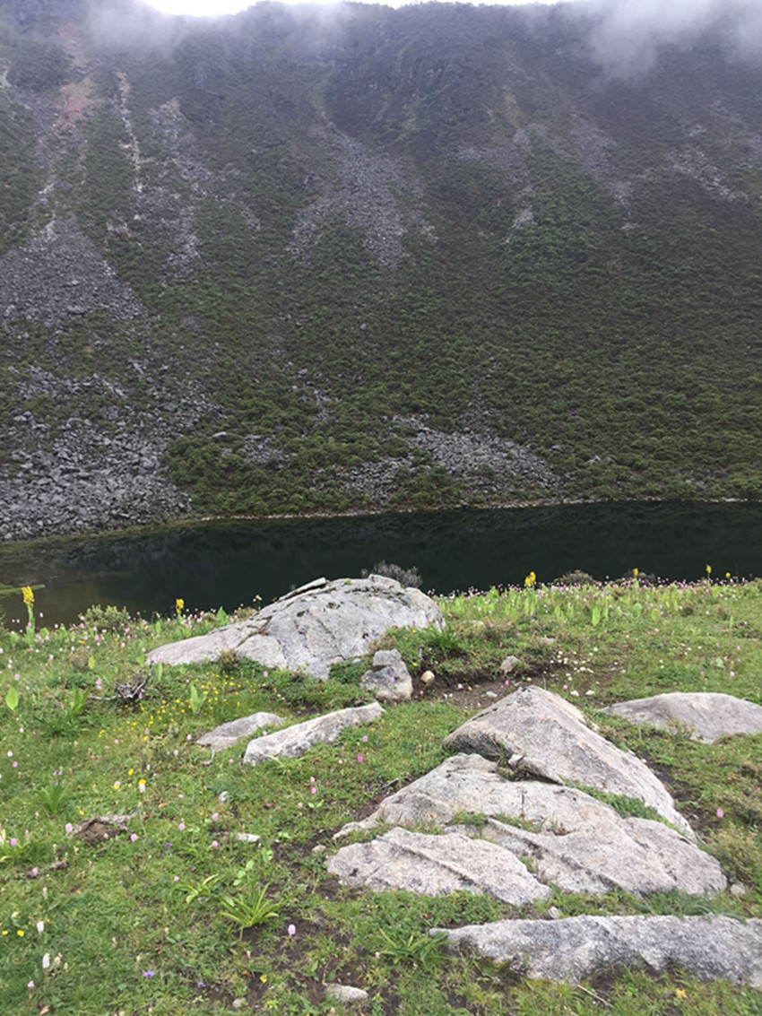 銀珠聽(tīng)到南吉即興唱出的山歌那么溫婉動(dòng)人,被風(fēng)吹冷的眼睛里落下了兩顆溫?zé)岬臏I水。她掩飾住自己的情緒,從粗重的呼吸里回答:“好啊!”南吉聽(tīng)到銀珠對(duì)唱,臉上綻放出笑容。她們的腳底不再發(fā)出響聲的時(shí)候,就是已經(jīng)走到了兩座大山之間的那片山谷。一層淺雪里露著青草、一叢叢開(kāi)紫花的小杜鵑,還有密密匝匝的矮腳柳。銀珠站在一塊土包上,她打開(kāi)雙臂,一臉明媚地對(duì)著南吉說(shuō):“阿姐,這片沒(méi)有積雪的山谷就是我送給你的禮物?!?/span>