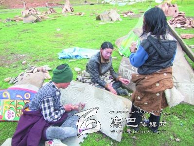如今,二三十個當?shù)睾⒆痈酀蓪W習石刻技藝,大女婿德貢也跟隨多澤學習了六年多,除了傳授石刻技藝,多澤常常講起心中的“罪孽”,他希望后來人以此為鑒。