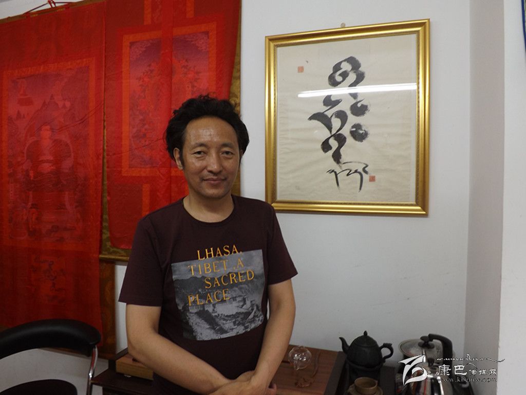 在嘎多探求藏文書法創(chuàng)新的同時(shí),自己的工作并不穩(wěn)定,并幾經(jīng)更換,最終工作地點(diǎn)從康定搬到了成都。在幾個(gè)畫院做了幾年工后,嘎多索性自己開始辦畫院,經(jīng)營禮品唐卡。