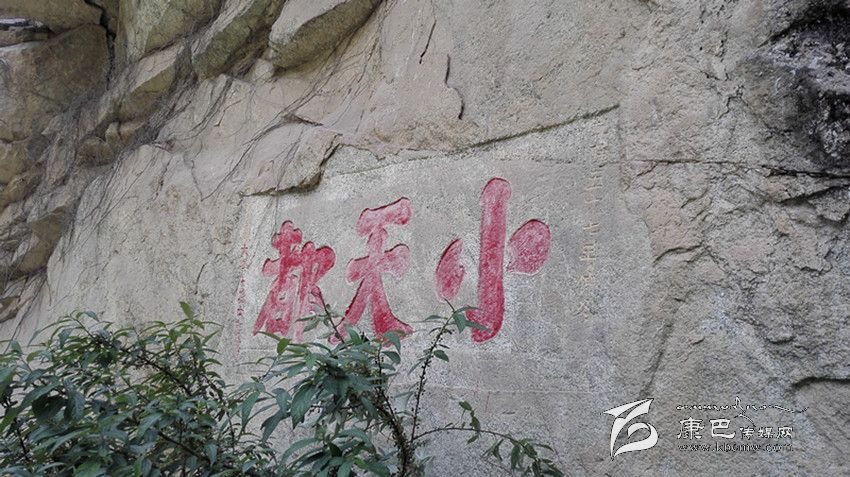 前些年,康定在此處修建水電站及公路,大量石塊隨意處置,沿路堆下,“小天都”三字幾被覆蓋。據(jù)當(dāng)?shù)厝苏f,以前此三字高懸半空,現(xiàn)已可以攀巖而上。