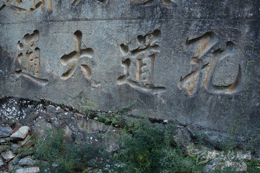 《竺國(guó)通衢》刻在一顆大石頭的下部,石高約三米,長(zhǎng)約六米,刻于清道光年間,意為通向印度的通道,充分說(shuō)明這條道路的價(jià)值和作用。大石和字已藏在核桃樹(shù)下,勢(shì)大必難除,加之雨水侵蝕下已風(fēng)化嚴(yán)重。