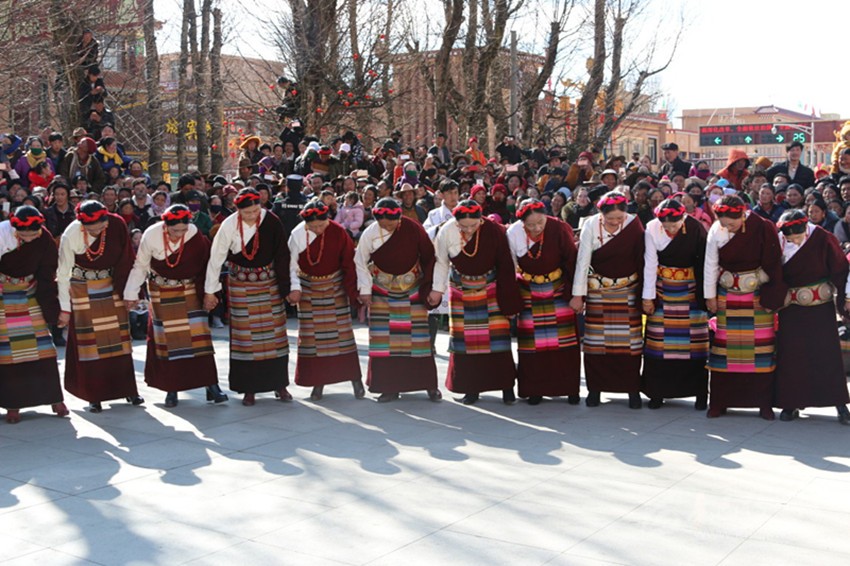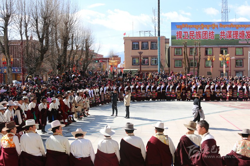 理塘縣農牧民群眾載歌載舞慶祝藏歷新年。