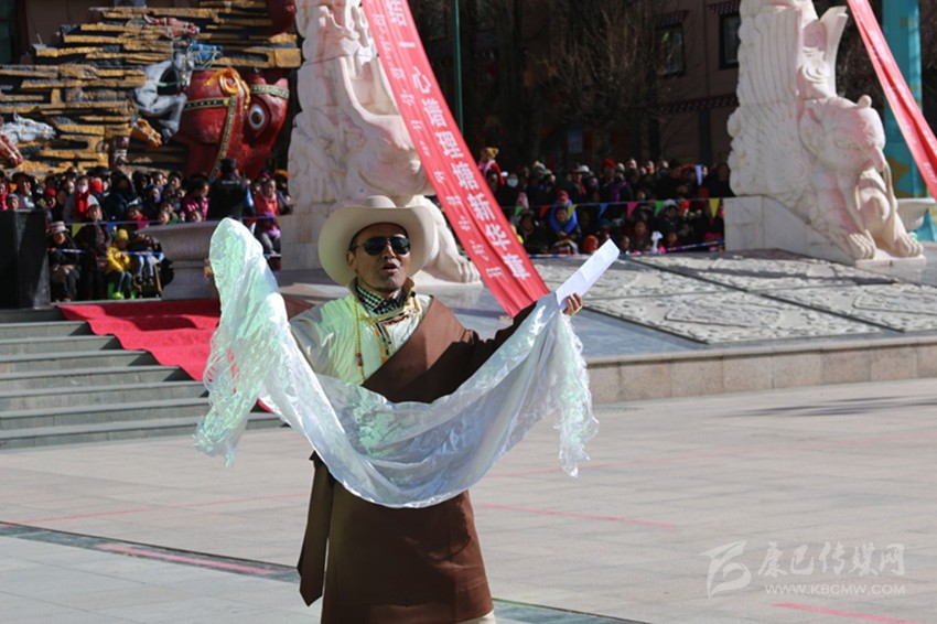 吉祥頌,藏語稱為“協(xié)巴”,是州級非物質文化遺產之一?!皡f(xié)巴”在藏族民間生活中占有重要的地位,尤其在喜慶活動上,是一項不可或缺的重要儀式。州級非物質文化遺產傳承人——高城鎮(zhèn)車馬村的翁堆老人手捧潔白的哈達,為觀眾表演了《協(xié)巴——中國夢、理塘夢》,展現了時代變遷中,“吉祥頌”這一民間藝術在思想內容和藝術手法的創(chuàng)新之美。