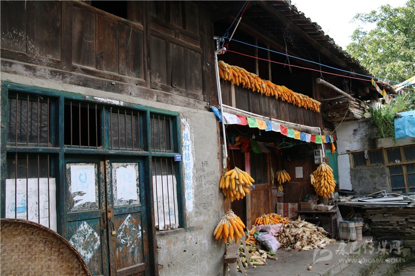“這算是原生態(tài)的土司房了”,穿過(guò)小道,董老指著一間木板房;“是的,不過(guò)它的危險(xiǎn)系數(shù)很高。”余華應(yīng)道。近看,門窗屋檐做工精細(xì),散發(fā)著古樸感,但也不難發(fā)現(xiàn)屋身的“補(bǔ)丁”;后退兩步觀望,整個(gè)屋身稍傾斜,是典型的危房。繼續(xù)行走,是泥土和木板結(jié)構(gòu)的房屋,這也是上衙門遺址最后一站。據(jù)董老講述,這里是土司老爺審人的地方,犯人就跪在門坎的大石階上。不過(guò),金黃玉米與鋼筋門窗的出現(xiàn),很難讓人想象土司老爺在該地審案的景象。
