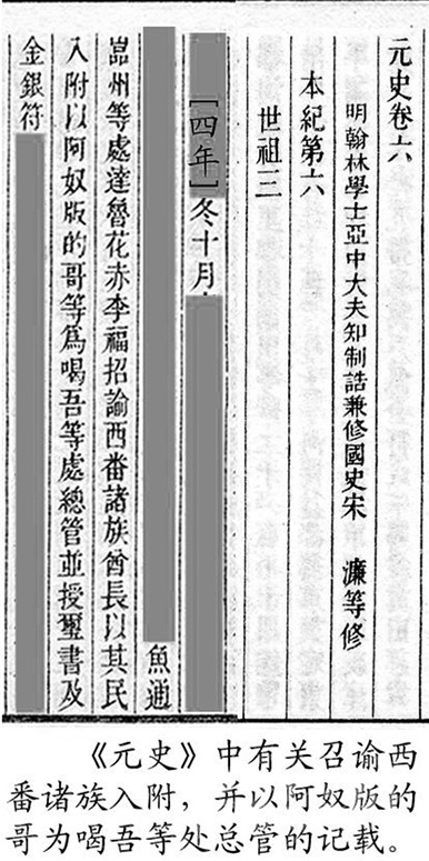 今屬康定縣的木雅,又分為上木雅和下木雅。下木雅的色烏絨地方,是木雅王曾住過的地方之一。民間又稱住在這里的王為“西吳甲布”(即“西吳王”),進(jìn)而又附會(huì)出個(gè)“西吳國”來。從木雅貢嘎西邊那條叫色烏絨的山溝往南到打箭爐,正如傳說的那樣,早年一般要走三天。《元史》有“喝吾”的記載,“喝吾”“色烏”都是藏語的音譯,藏語“絨”為山溝之意,指的就是這個(gè)色烏絨。元世祖忽必烈征滇,沿大渡河、金沙江而進(jìn),得到沿途部落首領(lǐng)的大力支持。長河(大渡河)西的“西吳王”自然也不例外。所以在至元四年(公元1267年)“冬十月壬戌,魚通巖州等到處達(dá)魯花赤李福,招諭西番諸族酋長以其民入附,以阿奴版的哥等為喝吾等處總管,并授璽書及金銀符?!钡玫缴w有皇帝大?。ㄓ癍t)文書和金銀符,朝廷正式任命為“喝吾”總管的酋長(木雅王)阿奴版的哥,之后從色烏絨遷到打煎爐,不僅成為朝廷認(rèn)可的“長河西土官”,還作了“四川分省右丞”。我們是否可以判定,“木雅王”遷爐的時(shí)間應(yīng)在至元四年(公元1267年)之后?1267年距今740多年,以此推算,如前文所說:今天西爐(康定城)的歷史,大約為700年!再者,若從宋代的“卡拉國”算起,說“明正”歷四十二代,不能說沒有一點(diǎn)來頭。