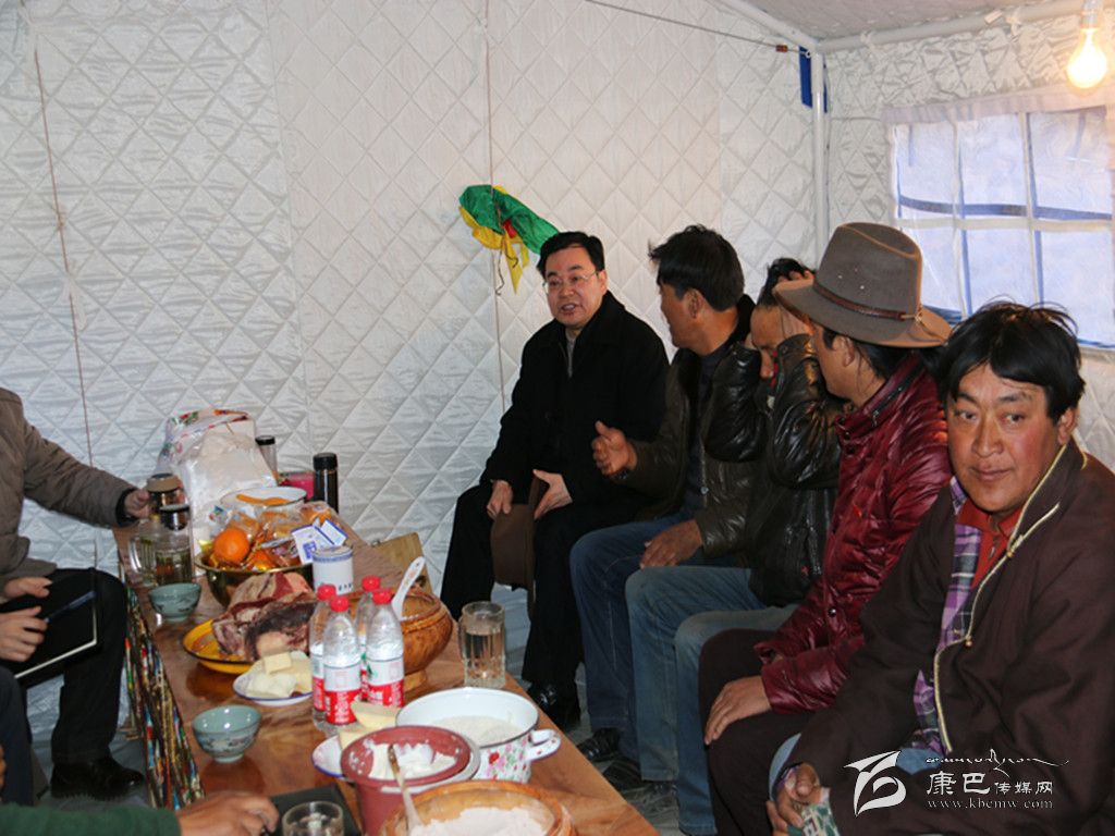 魚子西村緊鄰康定“11·22”6.3級地震震中,在此次地震中農(nóng)房受到不同程度的破壞。來到魚子西三村,鮮紅的黨旗高高飄揚(yáng)在災(zāi)區(qū)上空,成為災(zāi)區(qū)人民的希望,成為災(zāi)區(qū)人民奮然前行的方向。在溫暖的棉布帳篷里,胡昌升聽取了瓦澤鄉(xiāng)黨委、政府和魚子西一村、二村、三村抗震救災(zāi)和過渡安置工作匯報(bào)。