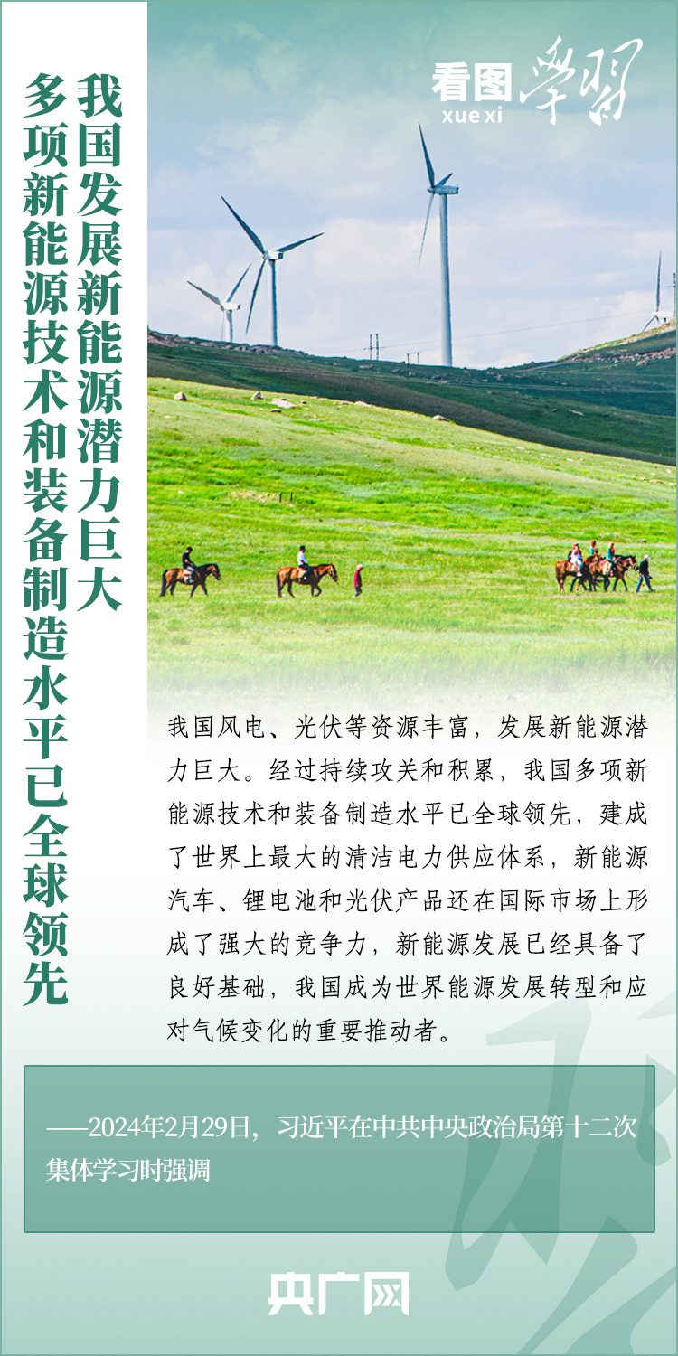 能源安全事關(guān)經(jīng)濟(jì)社會(huì)發(fā)展全局。2月29日,習(xí)近平總書記在中共中央政治局第十二次集體學(xué)習(xí)時(shí)強(qiáng)調(diào),我們要順勢(shì)而為、乘勢(shì)而上,以更大力度推動(dòng)我國(guó)新能源高質(zhì)量發(fā)展,為中國(guó)式現(xiàn)代化建設(shè)提供安全可靠的能源保障,為共建清潔美麗的世界作出更大貢獻(xiàn)。一起來學(xué)習(xí)!
