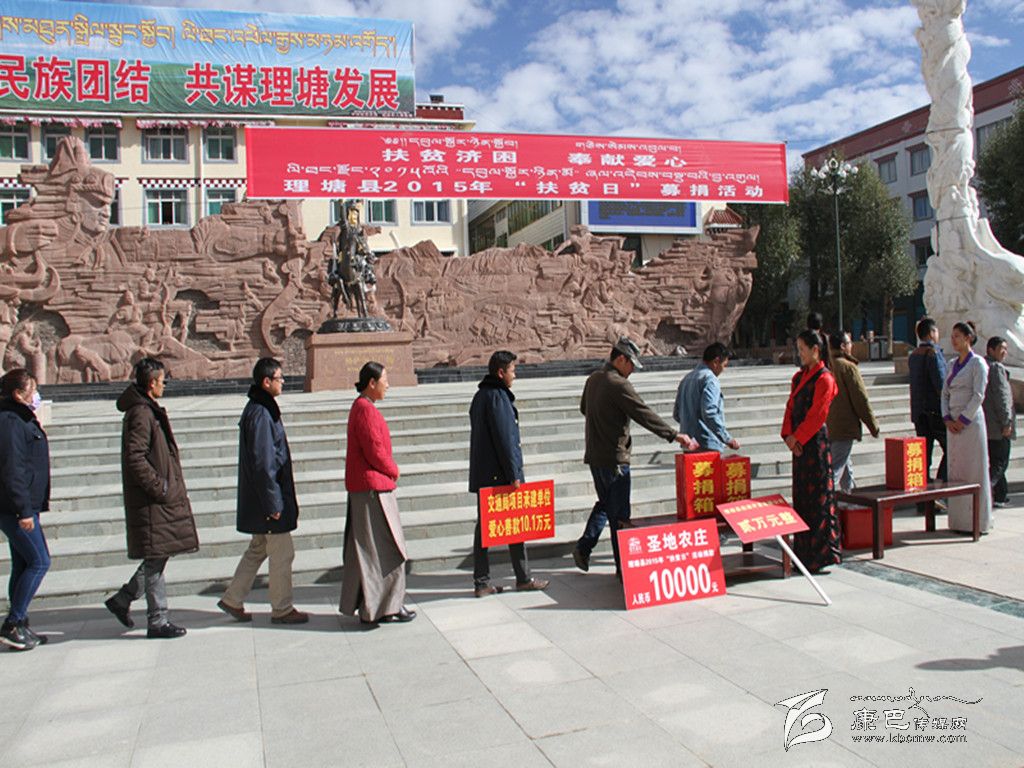 本網(wǎng)訊(葉強(qiáng)平 文/圖)10月17日,在紀(jì)念全國第二個(gè)“扶貧日”之際,理塘縣縣級(jí)機(jī)關(guān)干部職工、高城鎮(zhèn)農(nóng)牧民、駐軍官兵、中小學(xué)生、寺廟僧侶、個(gè)體工商戶、公司企業(yè)代表來到縣城格薩爾廣場(chǎng),為扶貧濟(jì)困奉獻(xiàn)一份愛心。