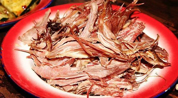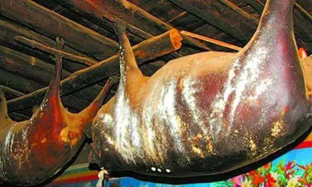 康南則用繩將豬勒死,讓血存于體內(nèi),然后用草點(diǎn)火去毛,于肛門(mén)處割一孔,取出內(nèi)臟,用干草或麥子等塞入豬腹內(nèi),用針縫合,縫口處用灶灰摻水?dāng)嚭铣珊芊?,掛在室?nèi),待其發(fā)酵,產(chǎn)生臭味時(shí)食用,稱(chēng)“臭豬肉”。