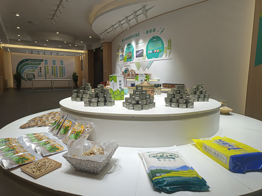 密奇奇公司大廳展臺上琳瑯滿目的有機產品。