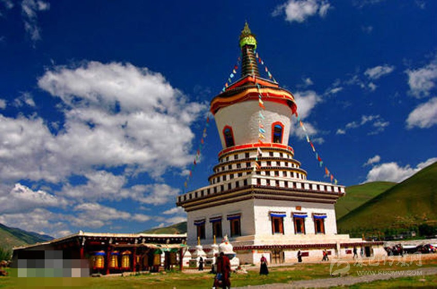 道孚尊神白塔(藏語為郎杰曲登),坐落在四川省甘孜藏族自治州道孚縣鮮水鎮(zhèn)的鈕日河畔,該塔由位于中央的主塔和二十四座小佛塔組成,石木結(jié)構(gòu)。主塔高53 24米,基寬28.5米,為十三層密檀飛檐的空心塔,內(nèi)設(shè)木梯可攀登至塔身項(xiàng)部。西與尼措山麓的古剎尼措寺遙遙相望,是康區(qū)最大的一座佛塔。